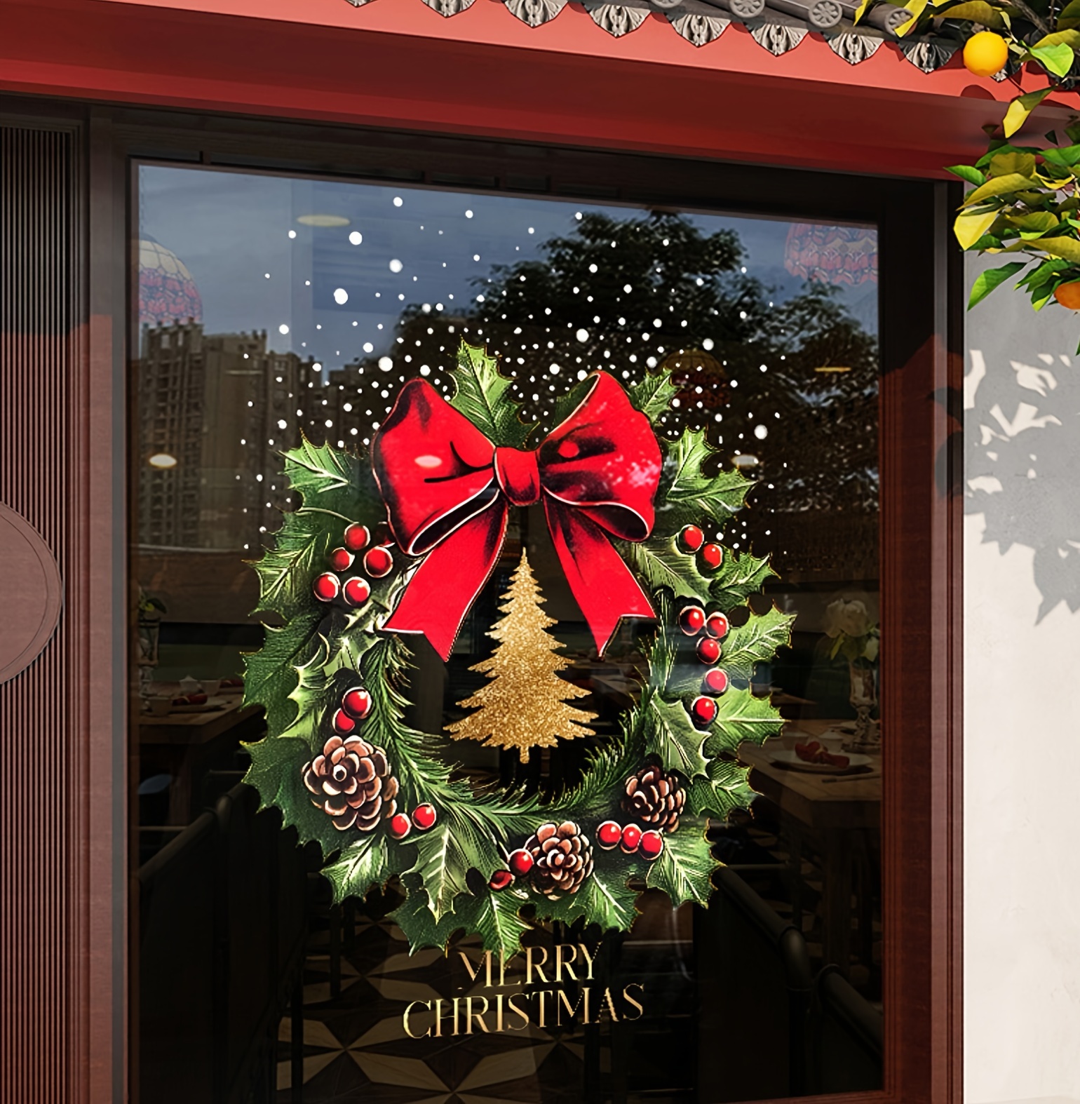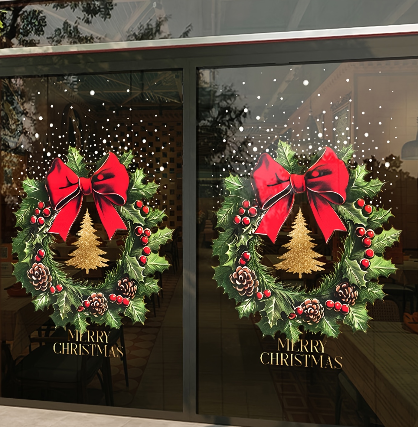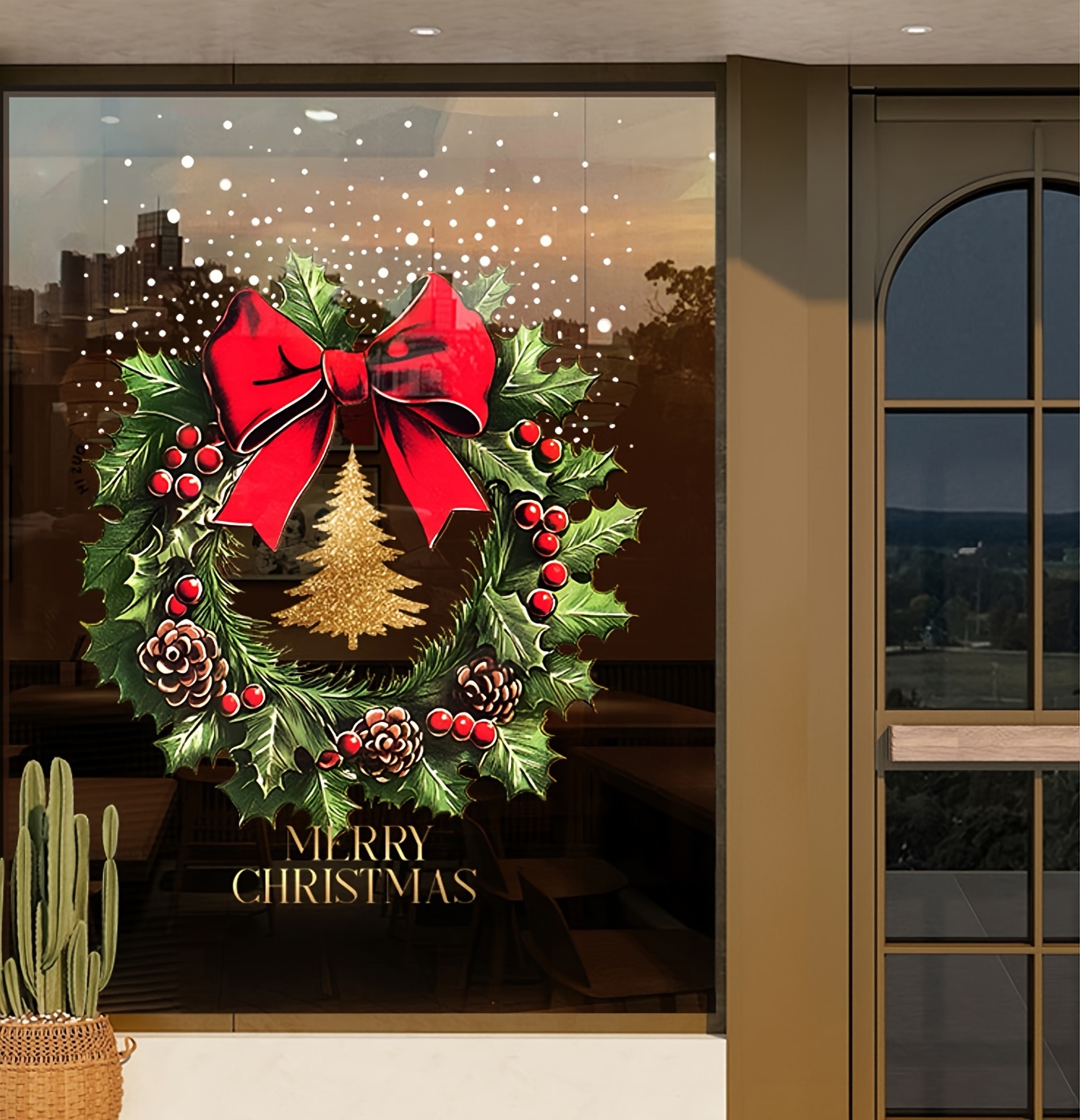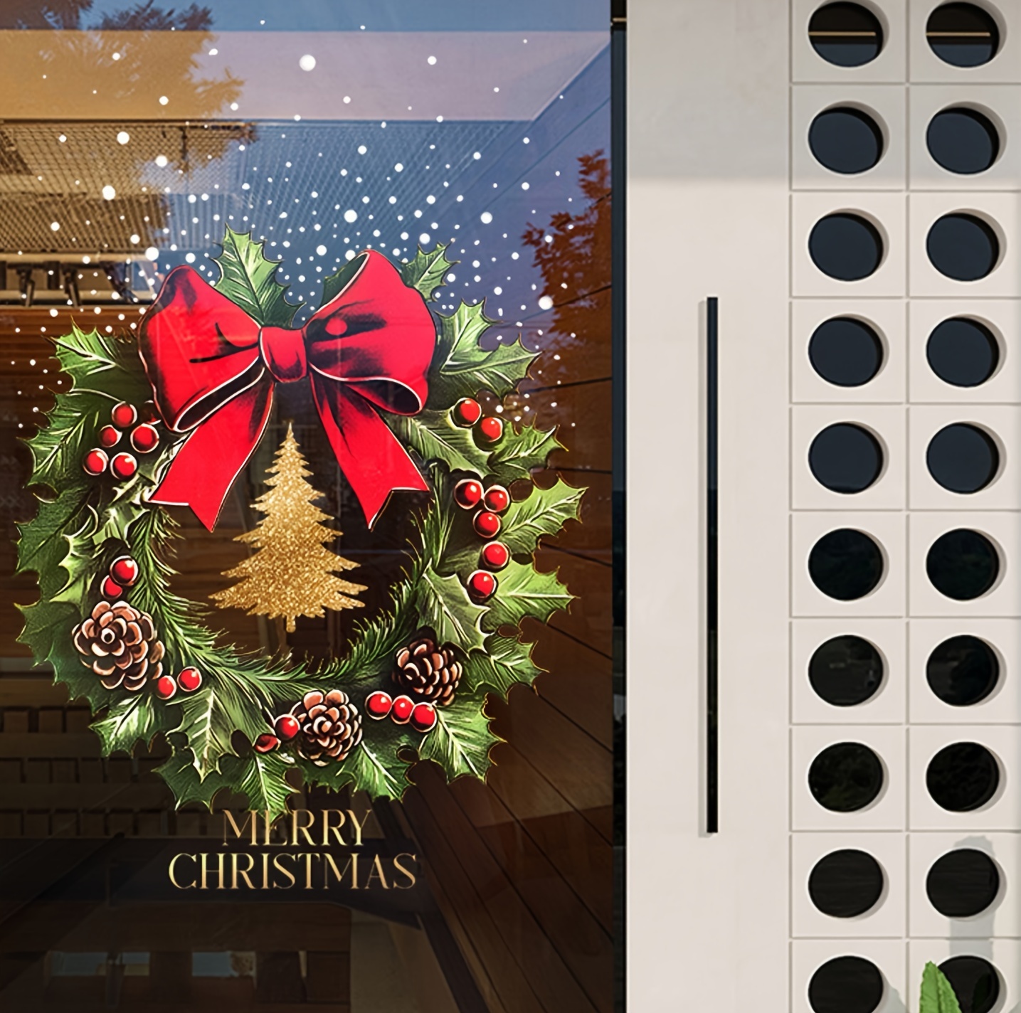 1pc Double-Sided Static Cling Christmas Wreath Window Cling, 11.8X11.8 Inches, Festive Holiday Decor, Easy to Apply, for Home & Kitchen, No Feather