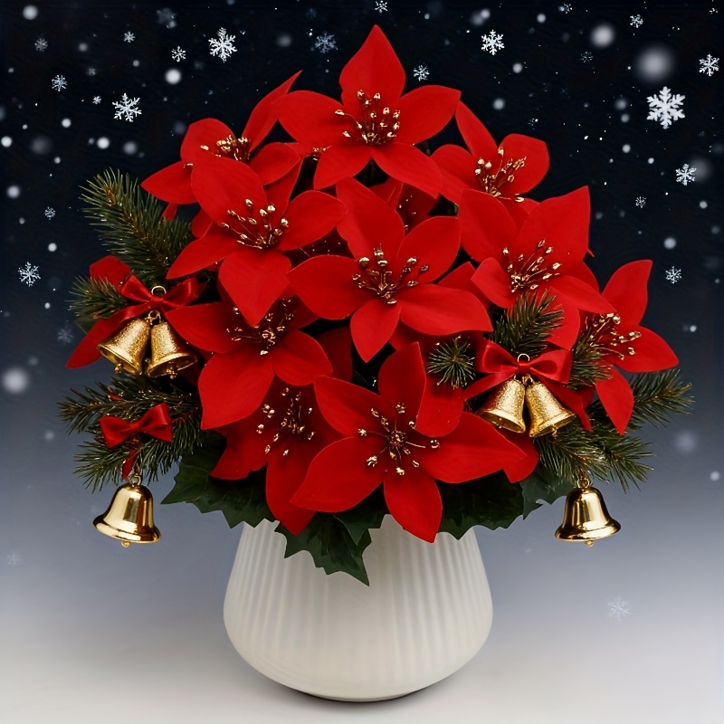 28 Artificial Red Poinsettia Flowers, Perfect for Christmas Home Decor, Table Centerpieces, Wedding Decoration, Christmas Tree, Exhibition, Winter Display