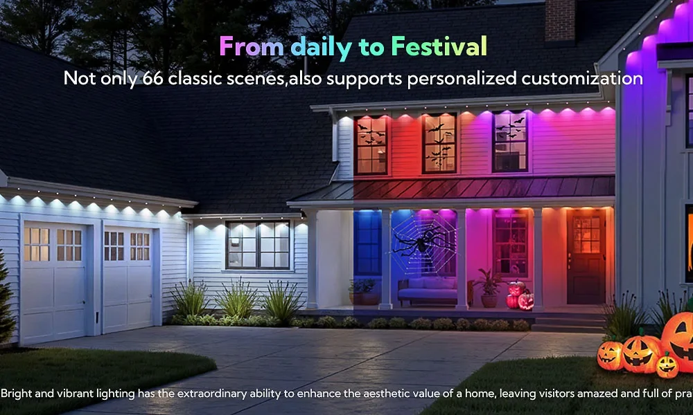 300FT 180LED Permanent Eaves LED Lights Outdoor Waterproof RGB String Lights DIY Scene Christmas Birthday Holiday Party Lighting
