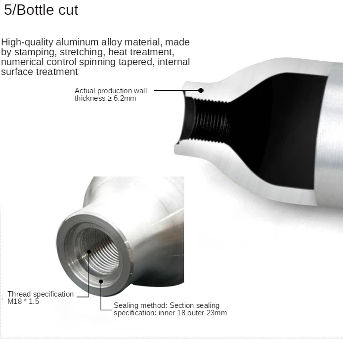 0.25/0.35L/0.45L/0.5L Aviation Al Alloy Gas Cylinder 30MPA High Pressure Air Cylinder Portable Oxygen Tank M18*1.5 Thread