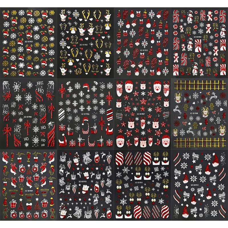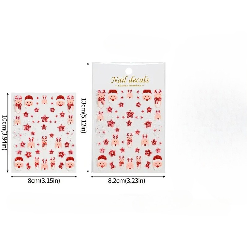 6 Sheets 5D Embossed Cute Cartoon Christmas Nail Art Stickers- Self-Adhesive Nail Decals with Santa Claus Snowman Elk Xmas Tree Designs, Festival Themed Nail Art Accessories Supplies for Women, Party Nails, Festive Manicure,
