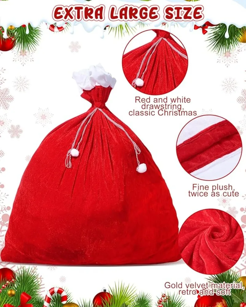Applicable: Christmas decoration, gift storage, Santa Claus props gift bag