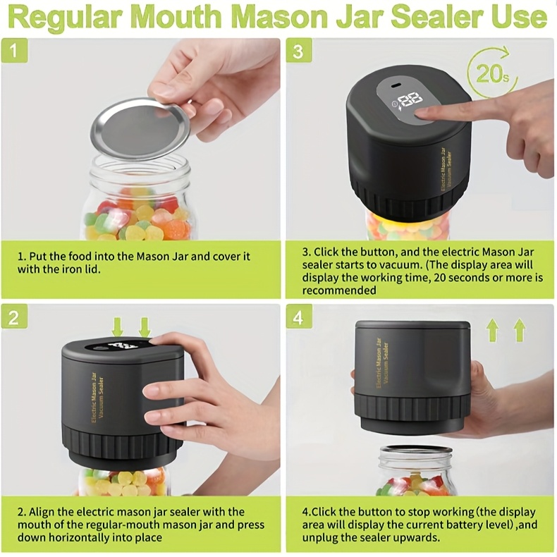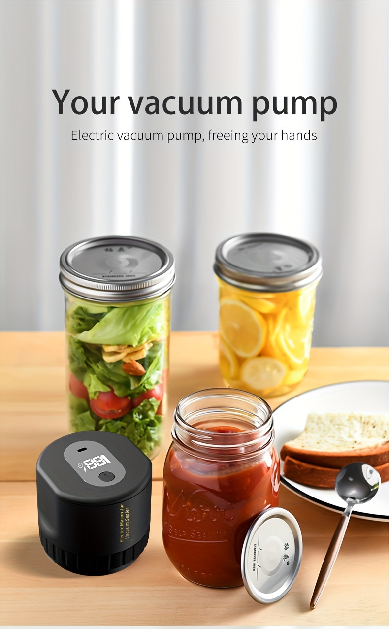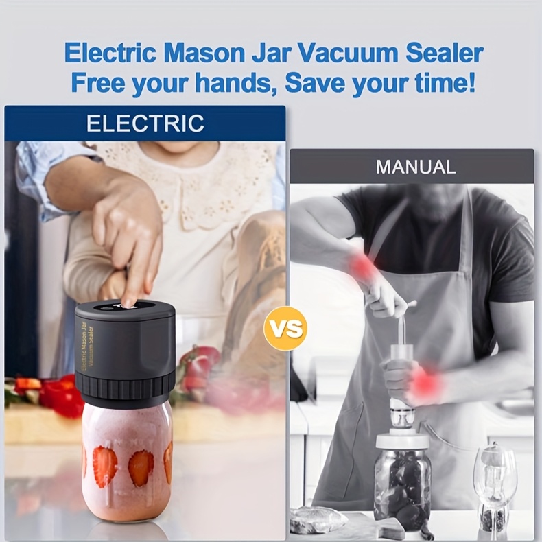Electric Vacuum Mason Jar Vacuum Sealing Kit - Contains Sealing Lids, Suitable For Wide Mouth And Regular Mouth Mason Jars, Food Preservation Vacuum Sealer For Home Preservation.