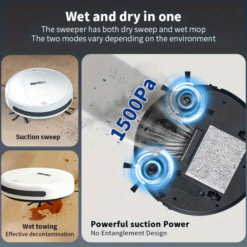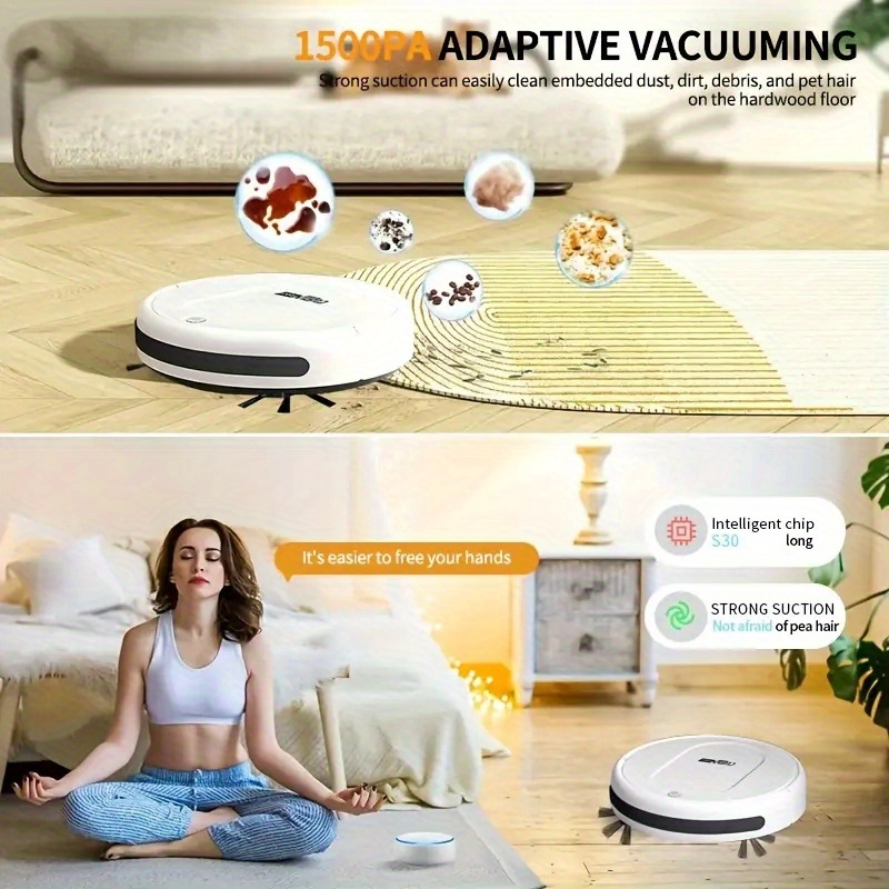 [Multi-Purpose Robot Vacuum] 3-in-1 Robot Vacuum Cleaner | Tangle-Free Suction, Automatic Self-Charging, Multi-Purpose for Floor Cleaning, Pet Hair, Paper & Garbage - Fast Charging, Powerful Cleaning, USB Powered, Vacuum Clea
