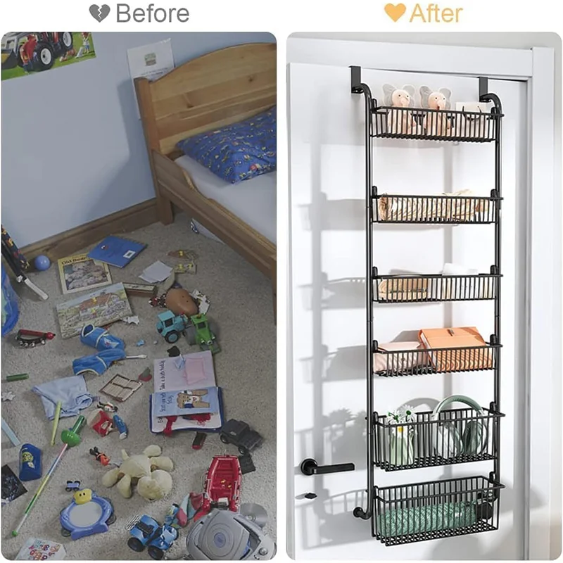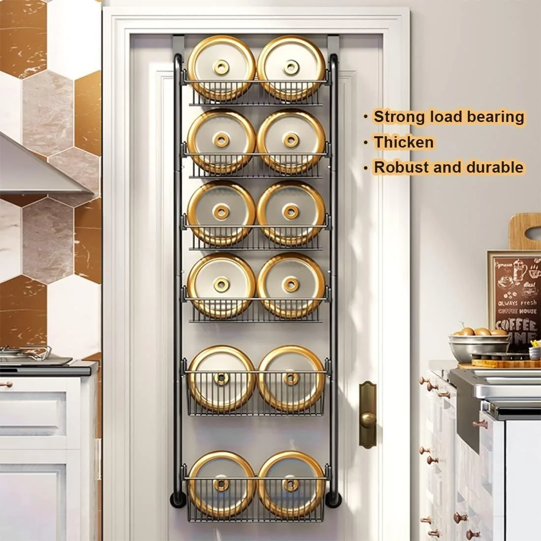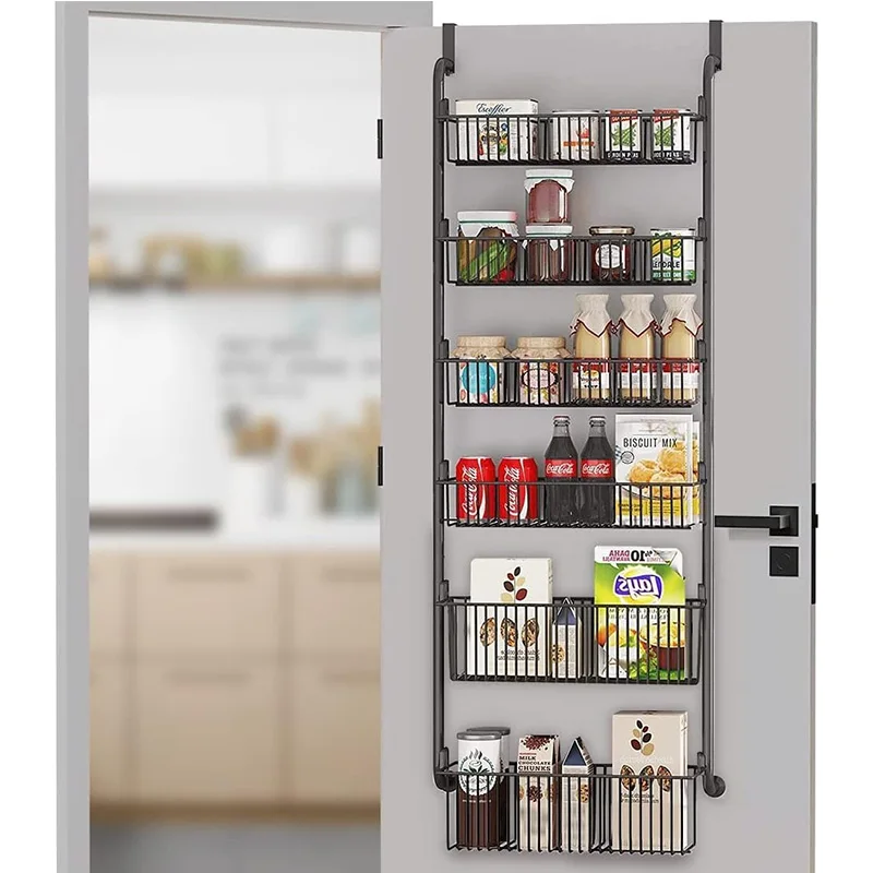 • ★【Extraordinary Design-Multi-purpose Over the Door Storage Organizer】One simple door rack has multiple purposes, which can be used as a pantry shelf organizer, bathroom/cabinet door shelf, can/bottle rack, and snacks organization. Perfect for home, pantry, living room, kitchen, or basement to extend your house space.